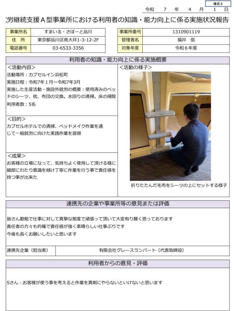 利用者が安心、安全で働きやすい環境を整える取り組みを行っております。